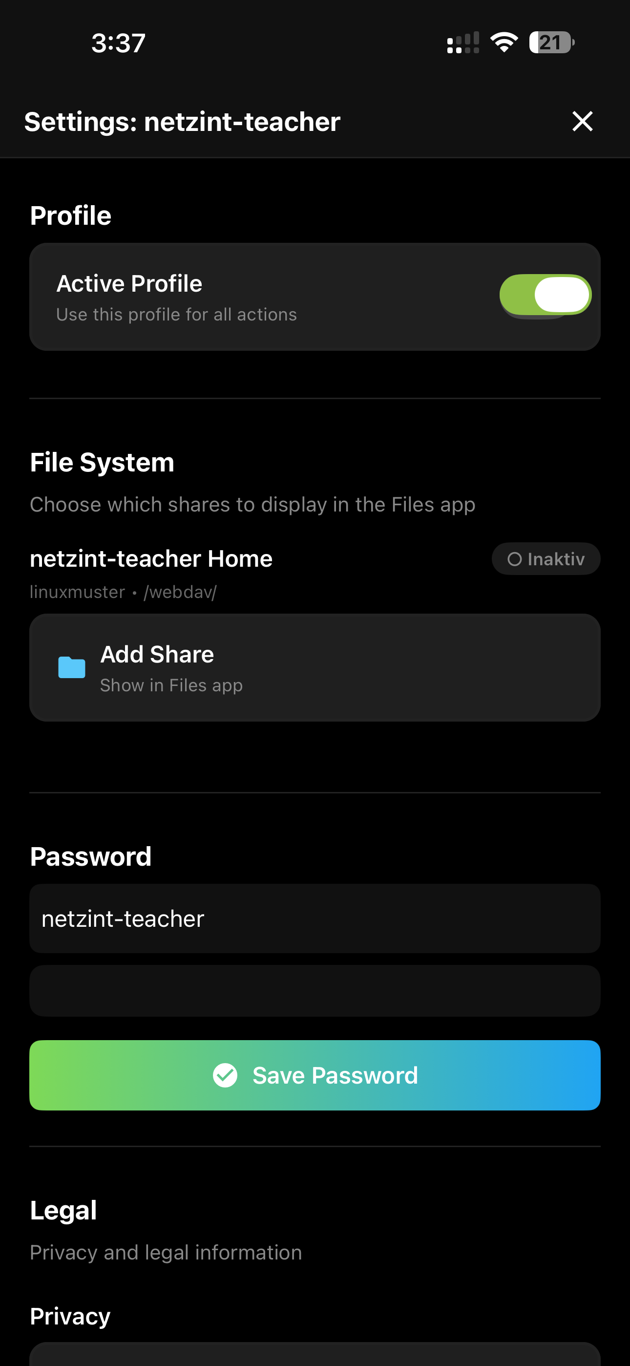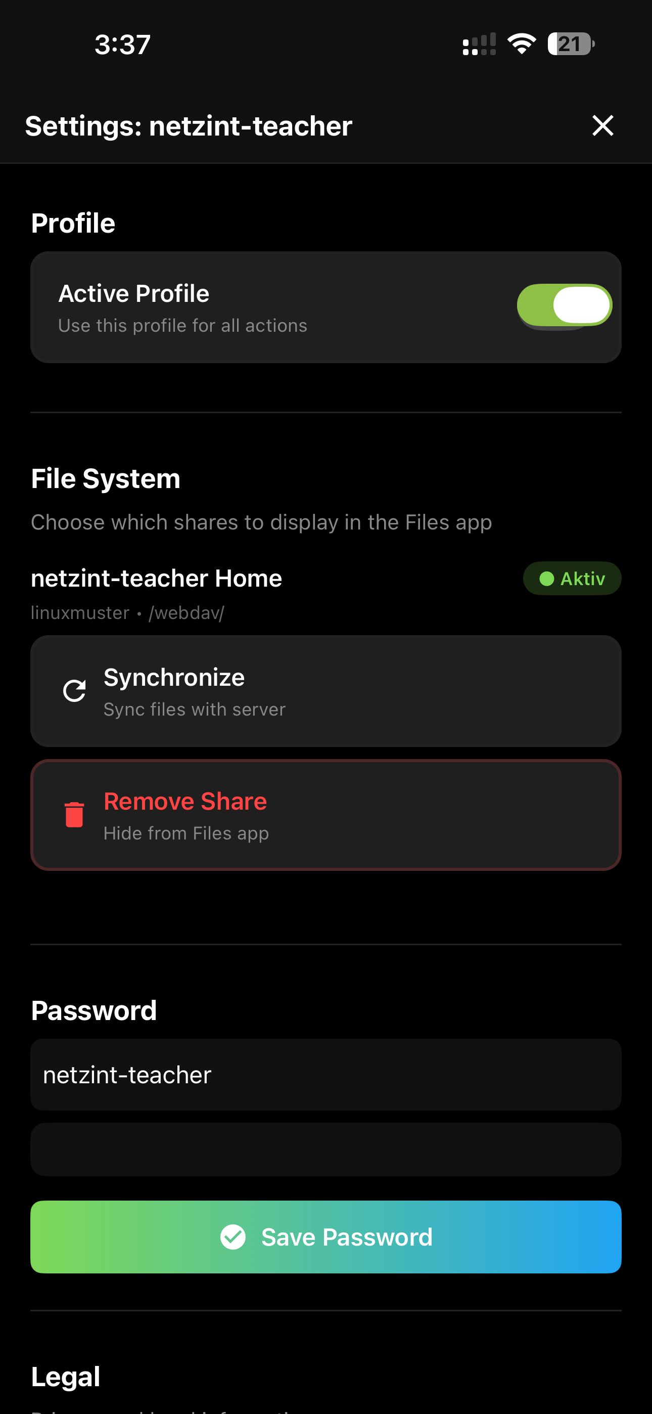 - Remove Share - Entfernt die Freigabe aus der Files-App (Dateien auf dem Server bleiben erhalten)