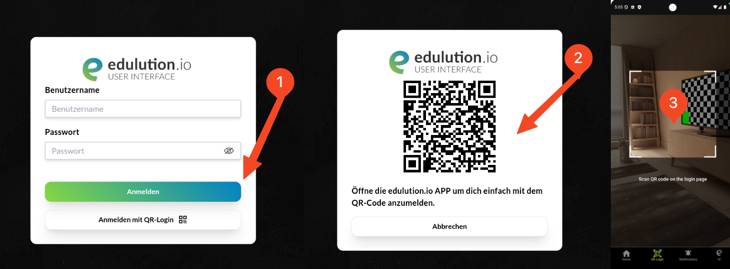 - Scanne den angezeigten QR-Code mit der edulution App
