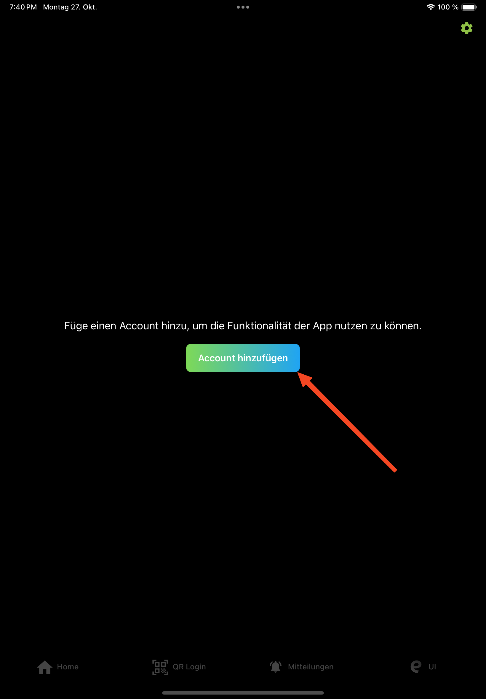 Wenn die App zum ersten Mal geöffnet wird, muss zunächst ein Account hinzugefügt werden, um den vollen Funktionsumfang der App nutzen zu können.